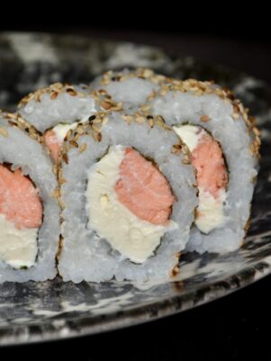 Base de Arroz de Sushi con Salmón, Palta, Queso y Sésamo 😋